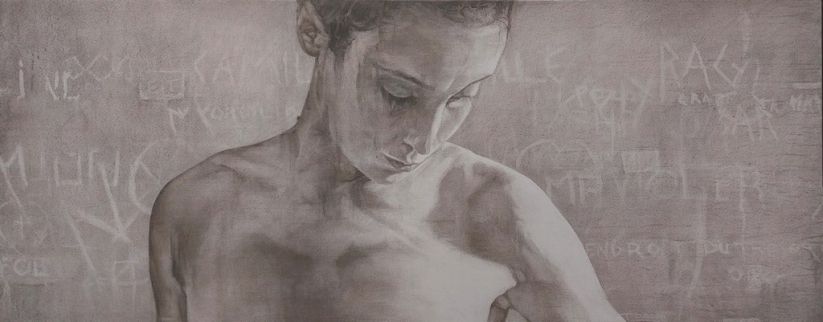 Acrylique colle de peau et fusain